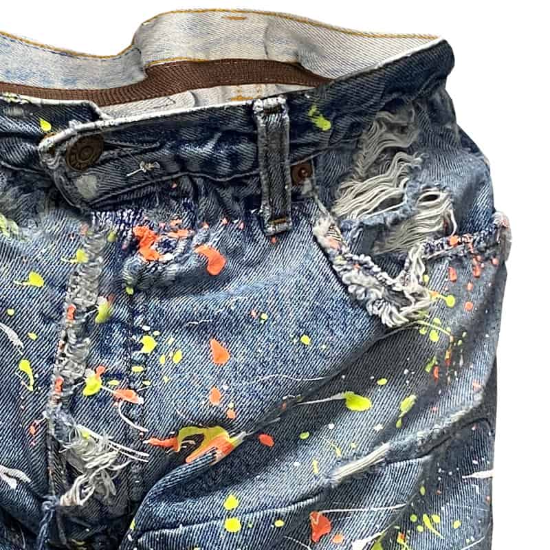 Afin de remettre au goût du jour les mythiques jeans de la marque Levi’s et en faire des pantalons ultra tendance, nous y avons ajouté un élastique à la taille.