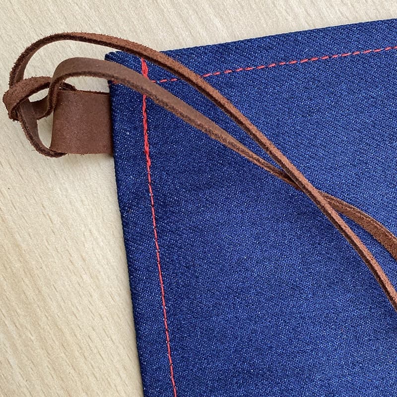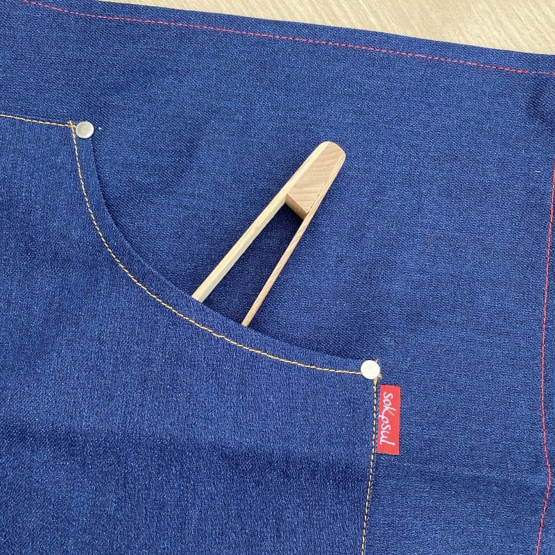 Kitchen apron, Café model. Raw denim apron with large pocket on the face.