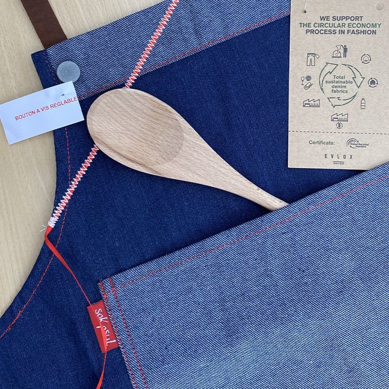 Tablier de cuisine Sapeur. Tablier en jean, brut ou délavé, avec grande poche sur le devant.