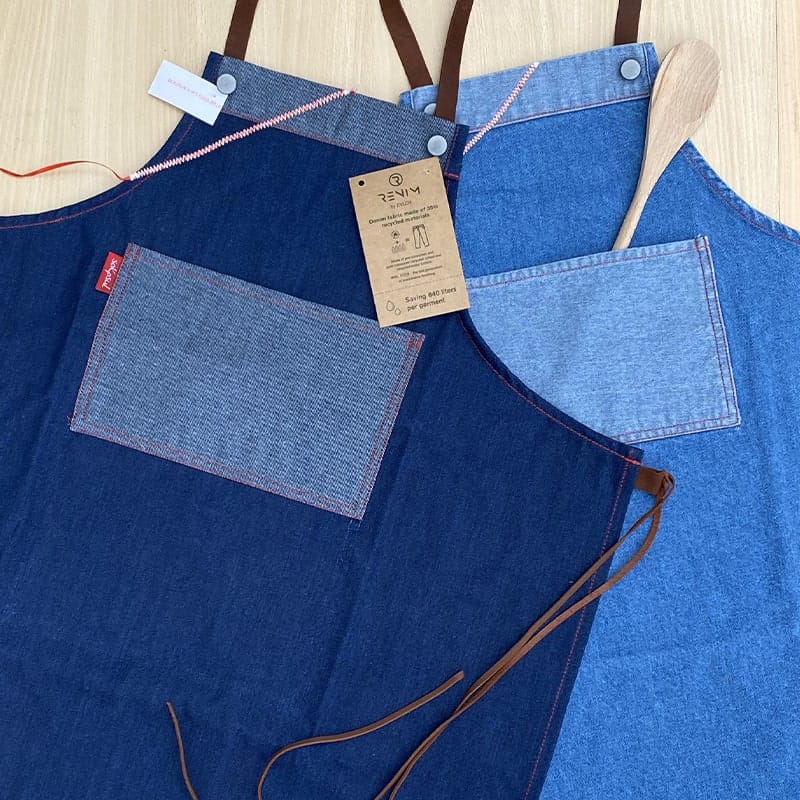 Kitchen apron, Sapeur model. Denim apron, raw or washed, with large pocket on the face.