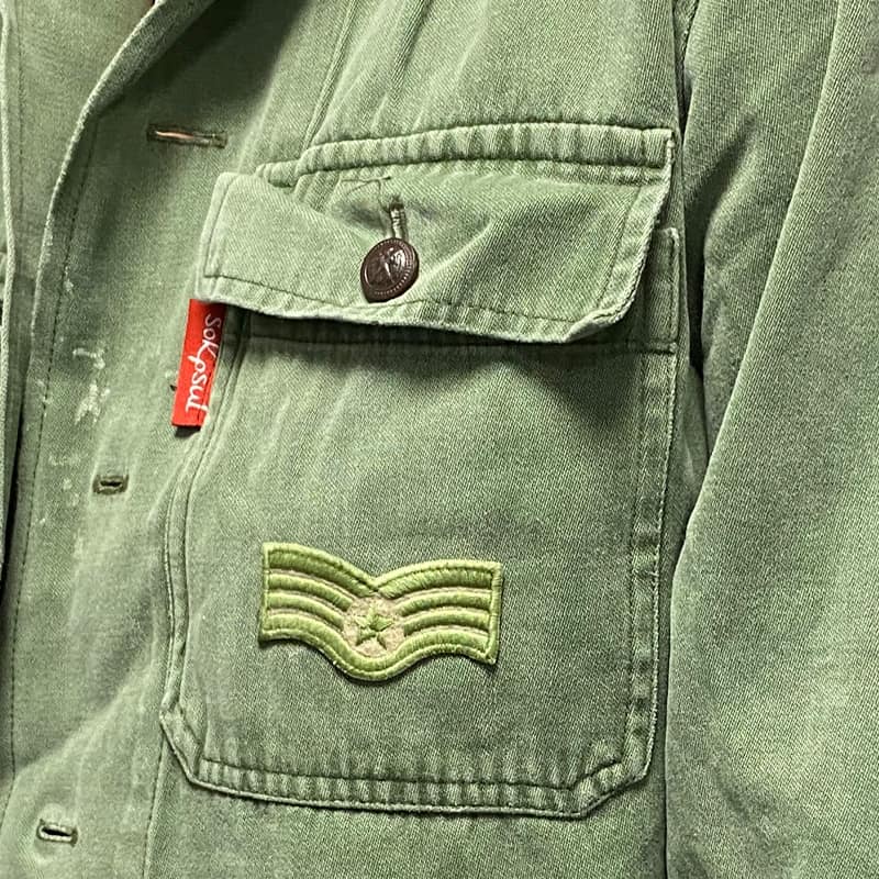 Vestes kaki vintage. Chaque pièce créée raconte sa propre histoire. Traces d’usures, tâches et déchirures confèrent à mes vestes un style unique portant les marques du passé.